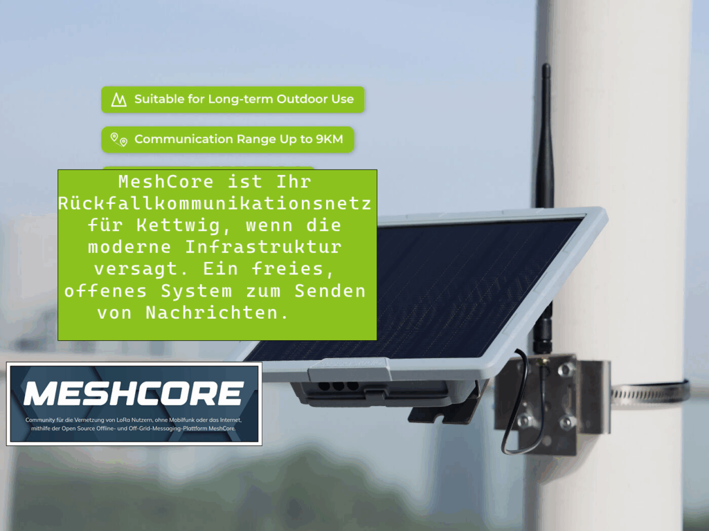 Im Rahmen des Projekts „MeshCore Essen Kettwig“ baut die Bürgerfunkinitiative eine netzunabhängige Kommunikationsinfrastruktur für den Stadtteil auf. Kernstück der Installation ist der MeshCore – ein autarker Mesh Node, der als Relaisstation dient.