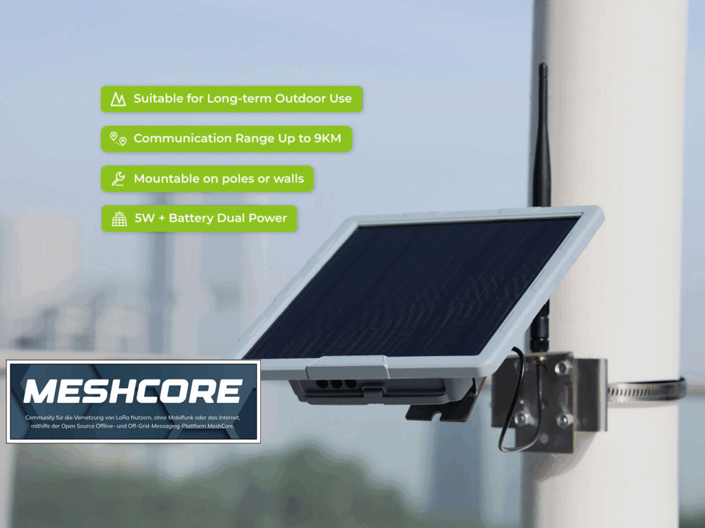 Die Initiative nutzt eine lizenzfreie Funktechnologie im 868-MHz-Band, um ein resilientes Kommunikationsnetz zu schaffen, das unabhängig von Internet und Mobilfunk funktioniert. Mit dem MeshCore setzen wir auf eine zuverlässige Fertiglösung für den Dauerbetrieb.
